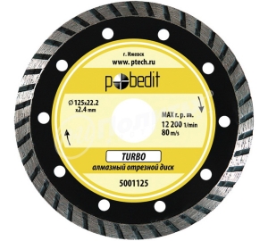Диск алмазный отрезной по камню Turbo Pobedit, 180 х 22,2 х 2,6 мм