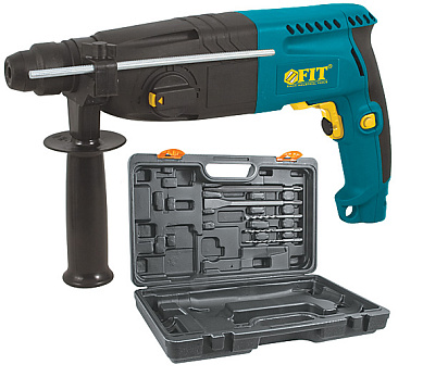 Перфоратор электрический FIT SDS-plus предназначен для сверления отверстий в различных материалах (дерево, сталь, бетон, кирпич и т. д.) в режимах сверления и сверления с ударом, а также для работы с долотом в режиме «удар».