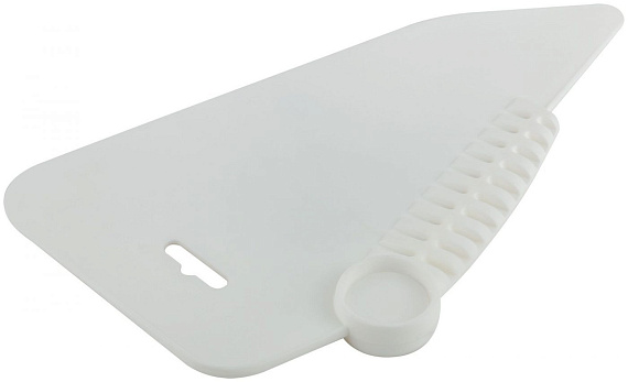 Шпатель прижимной, пластиковый используют для разглаживания и плотного прикатывания обоев к стене в процессе их наклеивания. С его помощью клей равномерно распределяют по стене и удаляют пузырьки воздуха из-под обоев.