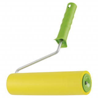 Прижимной валик изготовлен из высокопластичной пористой резины. Ручка валика из ударопрочной пластмассы, имеет эргономичную форму. Стержень ручки никелирован и защищен от коррозии.