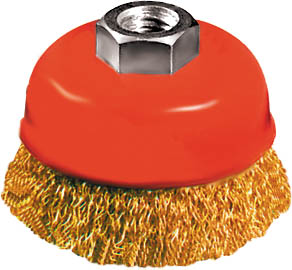 Корщетка-чашка насадка для шлифовальных и отрезных машин для снятия старой краски и ржавчины, удаления коррозии и шлака. Материал: стальная латунированная, волнистая проволока.