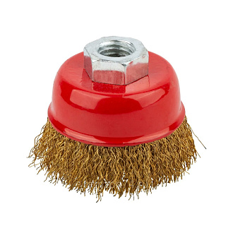 Корщетка-чашка насадка для шлифовальных и отрезных машин для снятия старой краски и ржавчины, удаления коррозии и шлака. Материал: стальная латунированная, волнистая проволока.