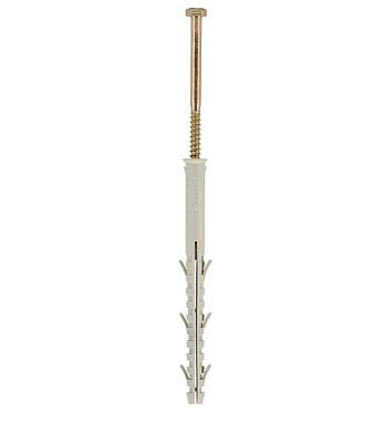 Материал дюбеля - полиамид. Данный материал обладает более высокой прочностью и жесткостью по сравнению с полиэтиленом и полипропиленом, что приводит к увеличению нагрузки на вырывание и увеличению срока службы.