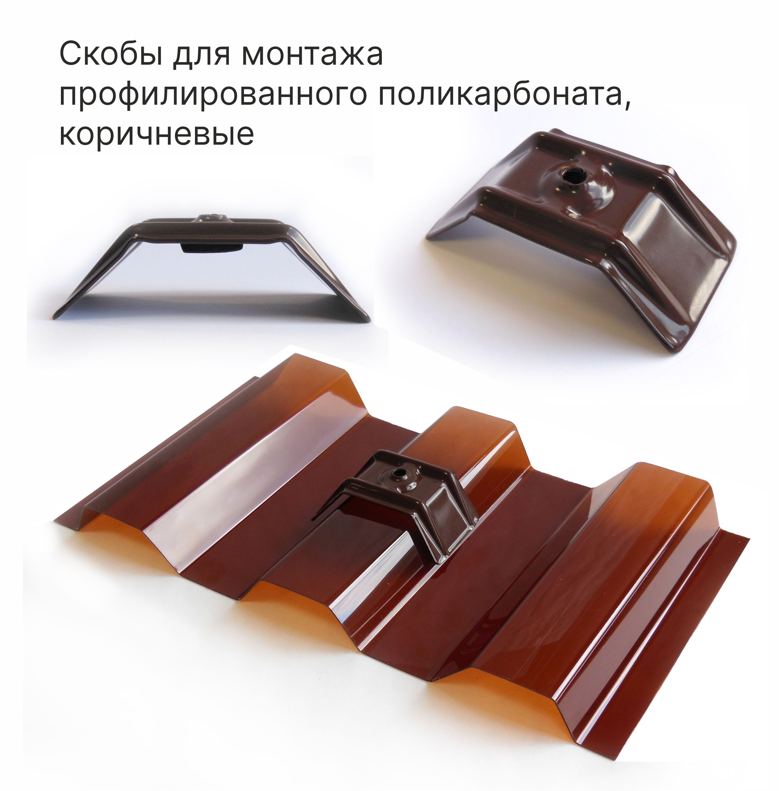 Скоба предназначена для монтажа профилированного монолитного поликарбоната.