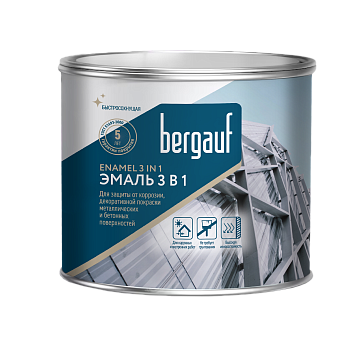 Алкидно-уретановая грунт-эмаль 3 В 1 «Bergauf» предназначена для окрашивания металлических конструкций, подвергшихся коррозии. Содержит ингибитор коррозии и преобразователь ржавчины.