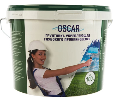 Укрепляющая грунтовка глубокого проникновения Oscar– водно-дисперсионный состав на латексной основе, наносимый на поверхность стен, потолков и полов для создания или улучшения сцепления между поверхностью и любыми последующим слоем (штукатурка, шпатлёвка, краска, обои и пр.), выравнивания впитывающей способности поверхности, укрепления осыпающихся поверхностей и/или обеспыливания. Применяется для обработки гипсовых и цементных штукатурок и стяжек, ГКЛ и ГВЛ, пазогребневых и ЦСП, ДСП и ДВП, кирпича, лёгкого и ячеистого бетона, ангидридных стяжек, кладок из натурального камня и пр.