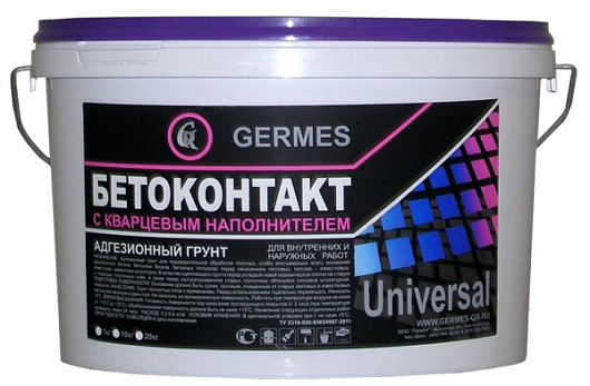 Грунтовка с кварцевым наполниетелем для предварительной обработки плотных, слабо впитывающих влагу оснований (монолитного бетона, бетонных блоков, бетонных потолков) перед нанесением гипсовых, гипсово-известковых, известково-цементных штукатурок.