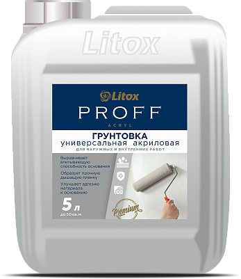 Грунтовка универсальная Литокс PROFF ACRYL на акриловой основе с высокими поверхностно-сцепляющими свойствами для профессиональной обработки поверхностей перед нанесением штукатурных и напольных смесей, плиточных клеев и т.д.