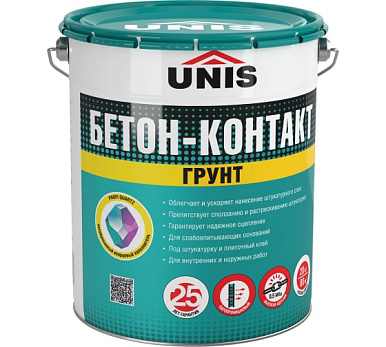 Готовый к применению грунт Юнис подходит для подготовки плотных, гладких, слабовпитывающих и других оснований к нанесению различных отделочных материалов. Особенно рекомендуется для обработки бетонных поверхностей стен и потолков перед нанесением гипсовых и цементных штукатурок, плиточных клеев.