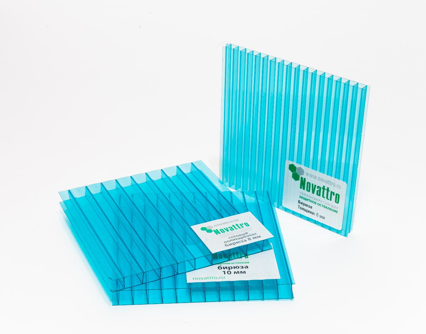 Сотовый поликарбонат 10х12000х2100мм Novattro, бирюза
