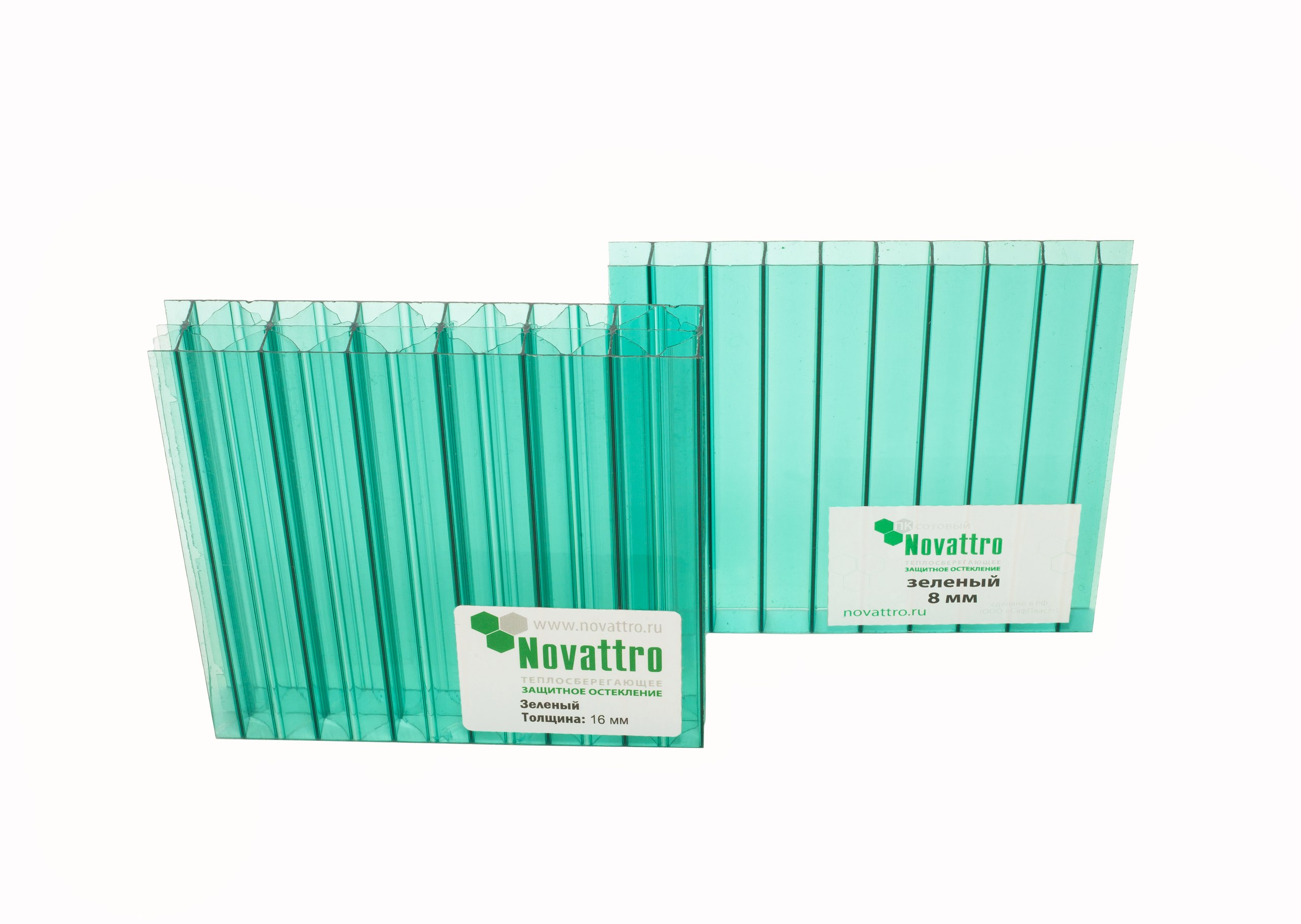 Сотовый поликарбонат 8х12000х2100мм Novattro, зеленый