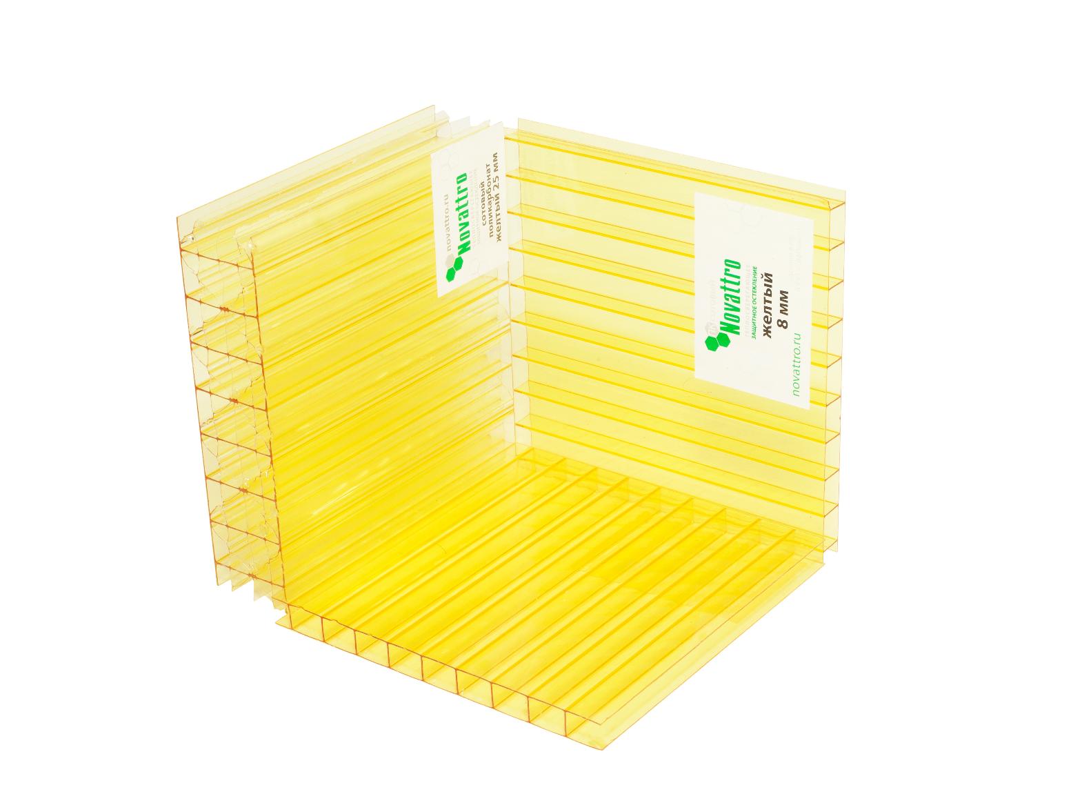 Сотовый поликарбонат 8х12000х2100мм Novattro, желтый