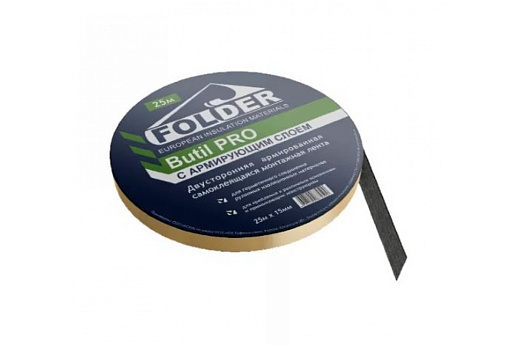 Folder Butyl Pro - армированная двухсторонняя бутил-каучуковая лента для соединения пароизоляционных, гидроизоляционных пленок и диффузионных мембран.