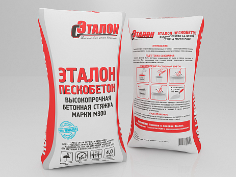 Сухая гарцовочная смесь Эталон М300 Пескобетон предназначена для изготовления прочных бетонных стяжек различной толщины, для заливки фундаментов при обустройстве жилых, общественных и производственных помещений, гаражей, зон с повышенным потоком людей, при монтажно-кладочных работах, для возведения и ремонта бетонных стен и оснований. Гарантированный отличный результат при соблюдении всех рекомендаций работ с Эталон М300 Пескобетон.