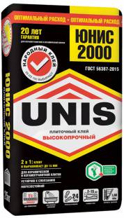 Плиточный клей Юнис 2000 (С 1) подходит для укладки керамической и мозаичной плитки, плит из природного камня и керамогранита.