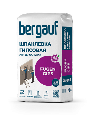 Пластичная гипсовая трещиностойкая шпатлёвка Бергауф Фуген Гипс для заделки стыков и швов ГКЛ, АЦЛ, СМЛ, ЦСП, ДСП.