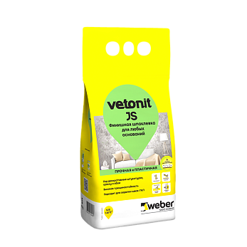 Внимание! Шпаклевка weber.vetonit JS не является водостойкой, она непригодна для выравнивания полов или оснований под облицовку плиткой.