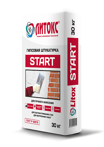 Литокс Старт - штукатурная сухая смесь на основе гипсового вяжущего и полимерных добавок. Предназначена для ручного оштукатуривания стен из бетона, кирпича, газобетона, пенобетона и других подготовленных поверхностей в помещениях с нормальной влажностью.
