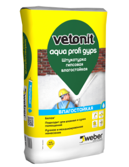 Штукатурка гипсовая Vetonit Aqua Profi Gyps предназначена для базового оштукатуривания стен и потолков, бетонной, пенобетонной и кирпичной поверхности слоем толщиной 5–50 мм (локально 100мм) , для создания базового и тонкослойного выравниваниющего слоя.