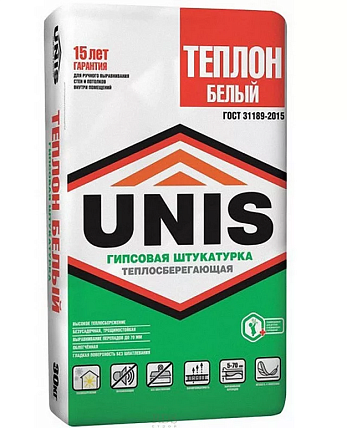 Гипсовая штукатурка Юнис Теплон подходт для выравнивания стен и потолков внутри помещений с умеренной влажностью под последующую отделку (оклейку обоями, окрашивание, облицовку плиткой и пр.). Оштукатуривание во влажных отапливаемых помещениях возможно только под последующую облицовку плиткой с тщательной затиркой межплиточных швов. Используется для ручного и машинного нанесения.