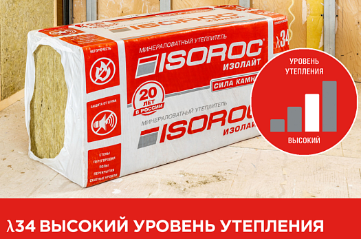 Теплоизоляция Изорок Изолайт (50 кг/м3) 1000х600х50 (4,8 м2/0,24 м3/8 шт)