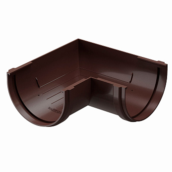 Угловой элемент водосточной системы устанавливается на внешних и внутренних углах кровли и соединяет желоба.